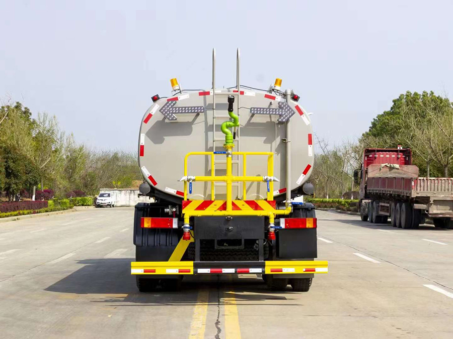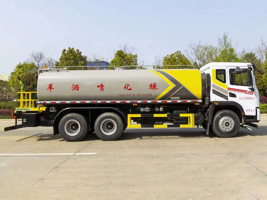 ①大鴨嘴前沖噴頭,萬向前沖球閥;②選裝氣動球閥駕駛室內(nèi)控制;③選裝自動灑水炮;④選裝LED箭頭燈,長條警燈;⑤選裝食品級304不銹鋼罐體;⑥選裝后加大工作平臺+霧炮機組;⑦選裝新款標準化外形。