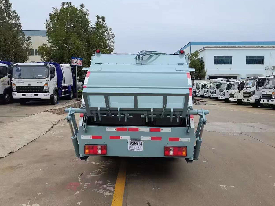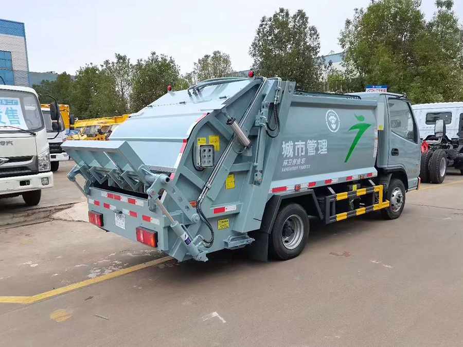 廂體有效容積4.5方,弧形箱體,采用專用鋼板制作,配套威森博樂多路閥,徐州全球通液壓油鋼管,皖液液壓油泵,填裝器舉升油缸帶液壓鎖裝置,采用PLC電控系統(tǒng),帶一鍵操作和手動操作兩種模式,電控操作盒3個,分別安裝在駕駛室內及車尾部各一只,方便操作,帶污水收集箱,尾部帶厚橡膠密封壓條。