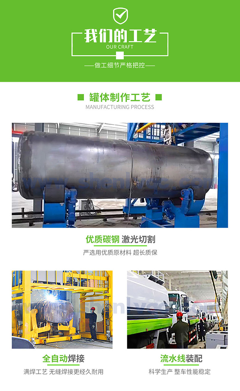 1、大鴨嘴前沖噴頭,萬向前沖球閥;2、選裝氣動球閥駕駛室內(nèi)控制;3、選裝自動灑水炮;4、選裝LED箭頭燈,長條警燈;5、選裝食品級304不銹鋼罐體;